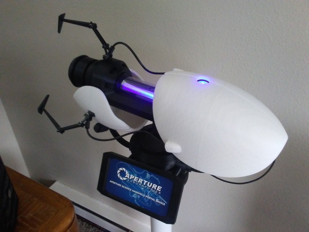 Set on it’s display stand and powered it up, those lights were the extra touch it needed. The photos here don’t really do it justice here in the daylight, and I have yet to run LEDs to the front barrel for a better illumination when looking at it from the front. As it is though, I’m quite satisfied with how it’s turning out. And it’s a blast to handle and play with, shooting portals all over the apartment. All that’s left is to paint it and apply some decals. Maybe a touch of weathering too. And when I get around to that, there will definitely be a Part 4 to this build log.
