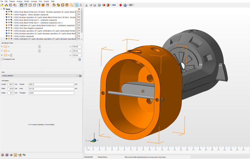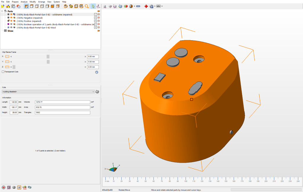 - Hollowed out the back half of the Portal Gun body to give more space for electronics.