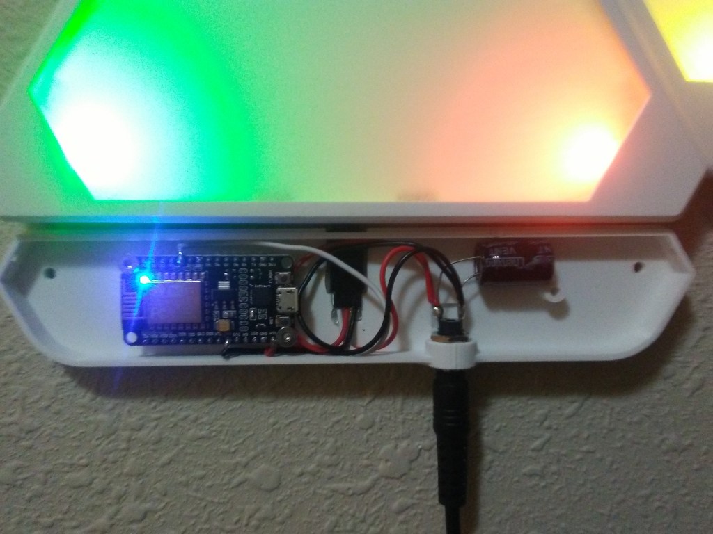 The open source Moodlite project (started by CdRsKuLL on moodlite.co.uk) aims to provide a clone of the Nanoleaf that one can make for themselves. Being the maker that I am and thinking it would be neat to have something like that as well, I figured I’d attempt to jump on the Moodlite bandwagon. Especially, since I had a roll of individually addressable LEDs I was looking to do something with and I needed another 3D printing project to keep my busy. The only components I was really missing were a suitable power supply and a wireless controller; both of which were quite easy to get a hold of and not too expensive either.