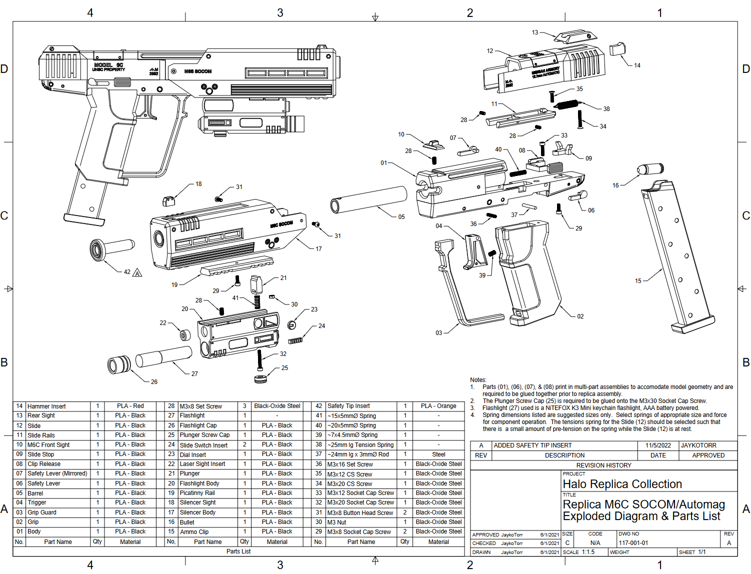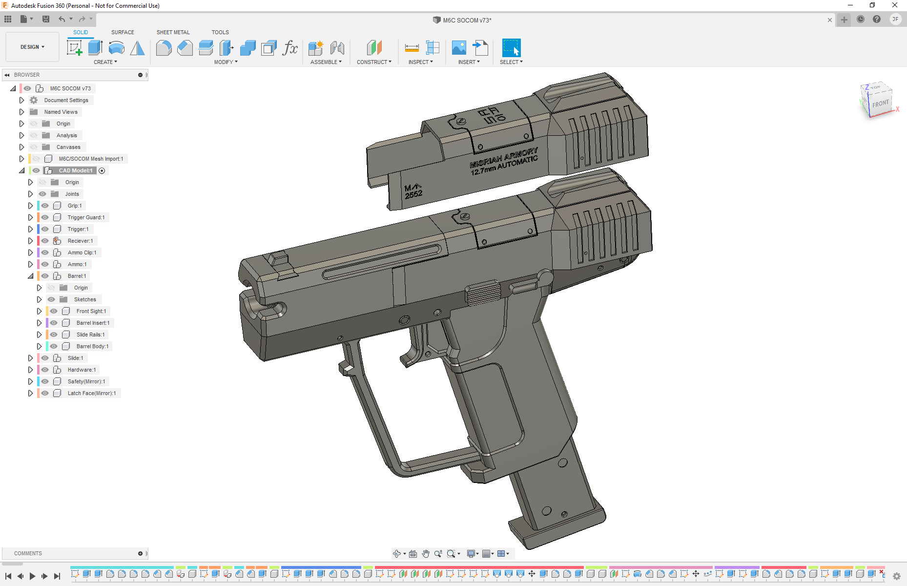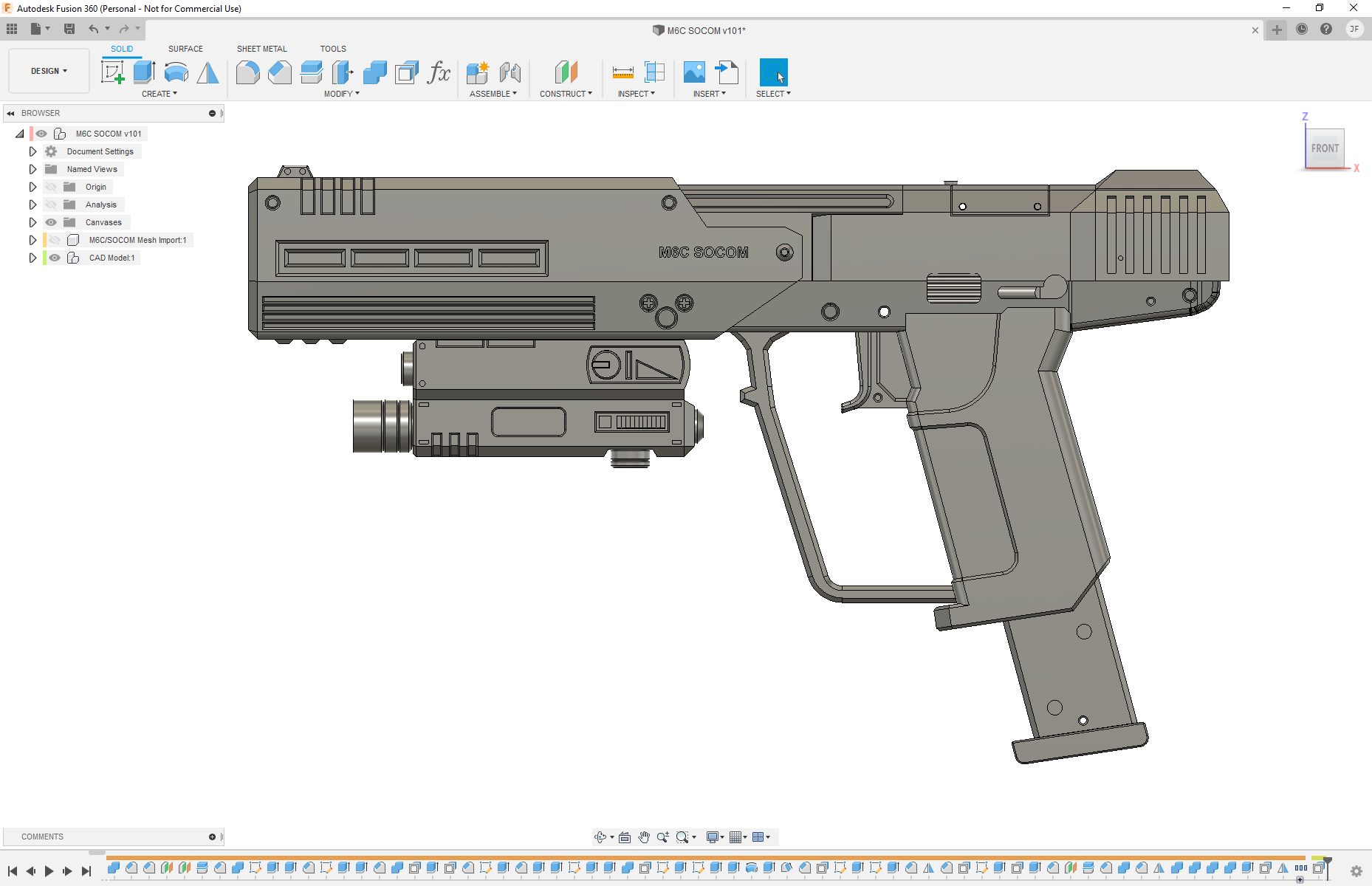 The Halo series, developed by Bungie, holds a special place in my heart. Halo was one of the first games I got on console when I was younger, and I’d followed the series and many of the books for far longer than I’d stuck with most others. And while I stopped following it as closely when 343 Studios took over, I did at least jump at the chance to get all the Halo games for PC when the MCC came to Steam. One of the games that didn’t get nearly as much love as some of the other games, Halo 3: ODST, was one of my favorites in the series. It was a great side-story and addition to the franchise in my eyes. And even to this day, I still have fun playing it. So, having gotten to play it again on PC, I’d decided to look into what replicas I could 3D print from it. Lo and behold, I found many models of the M6C/SOCOM pistol and the silenced M7/Caseless Submachine gun available for 3D printing. But, as always, after taking a look at them, they didn’t quite have the features that I wanted from the models, so… I figured I’d attempt to create my own version of these replicas, starting with the M6C/SOCOM pistol.