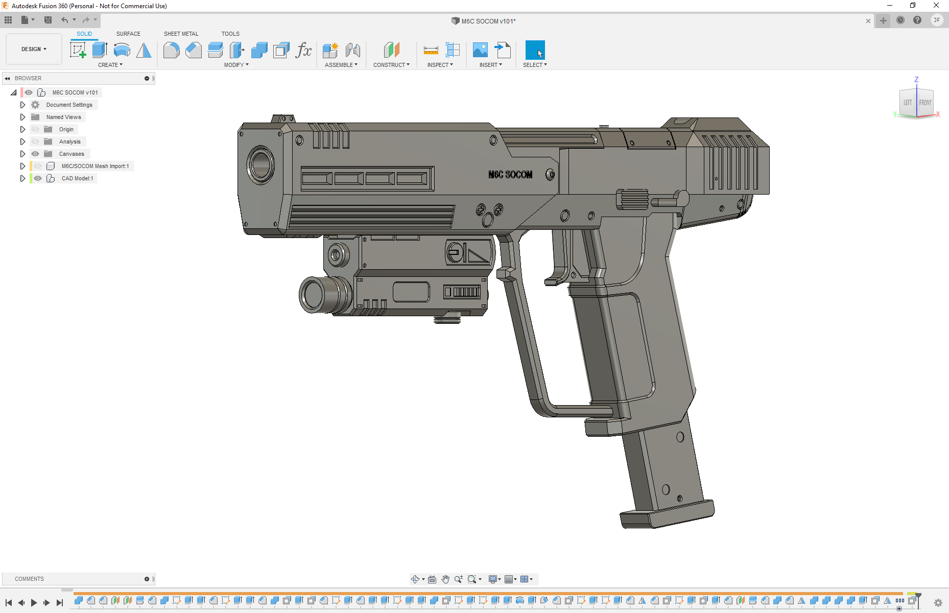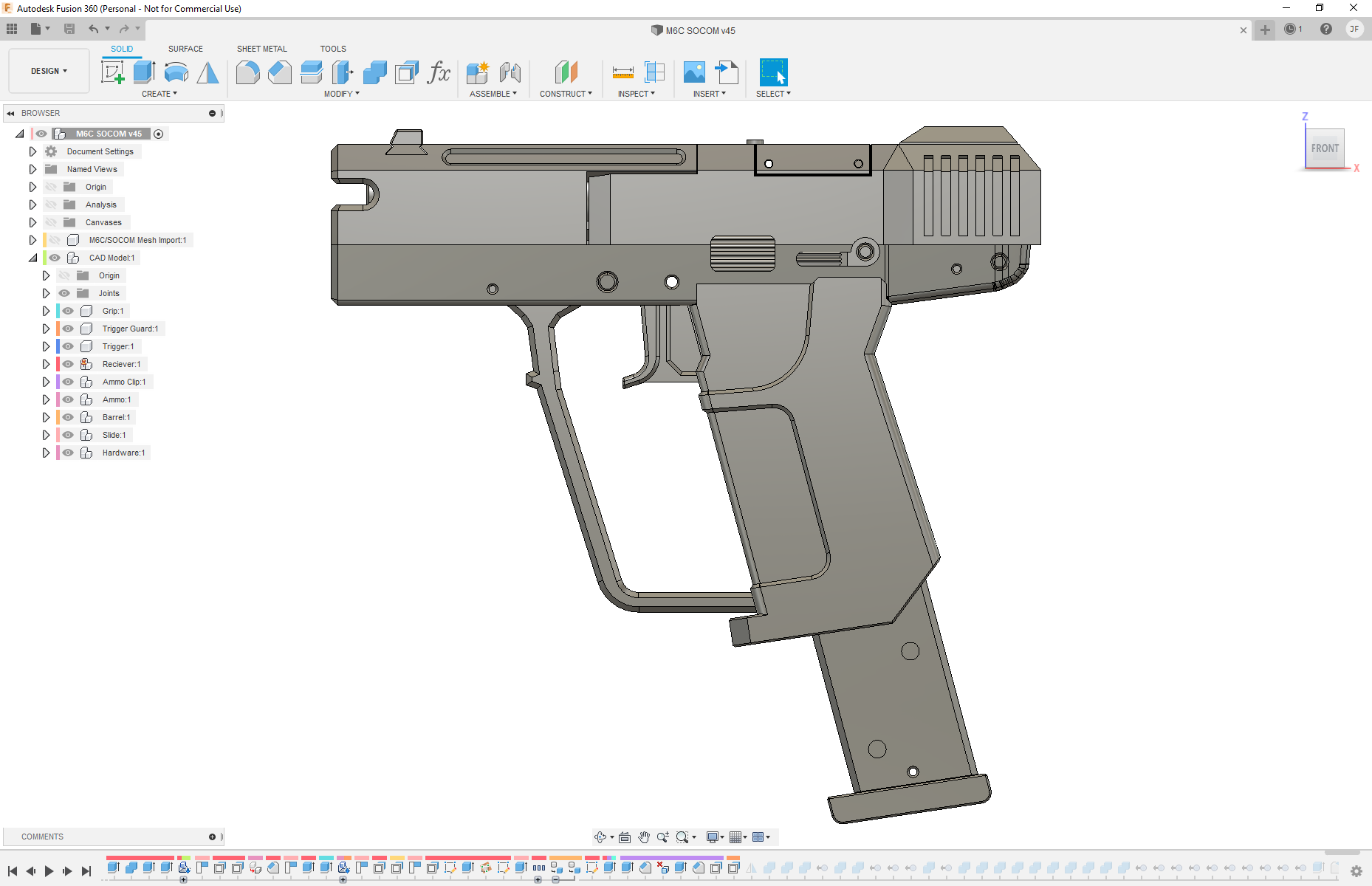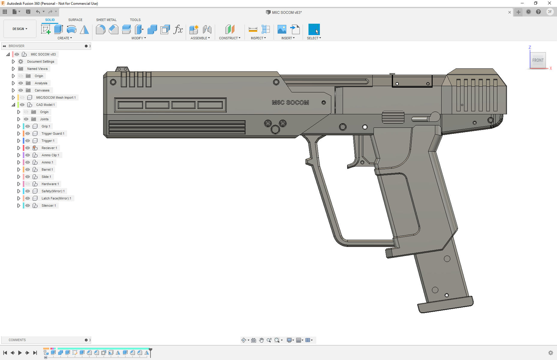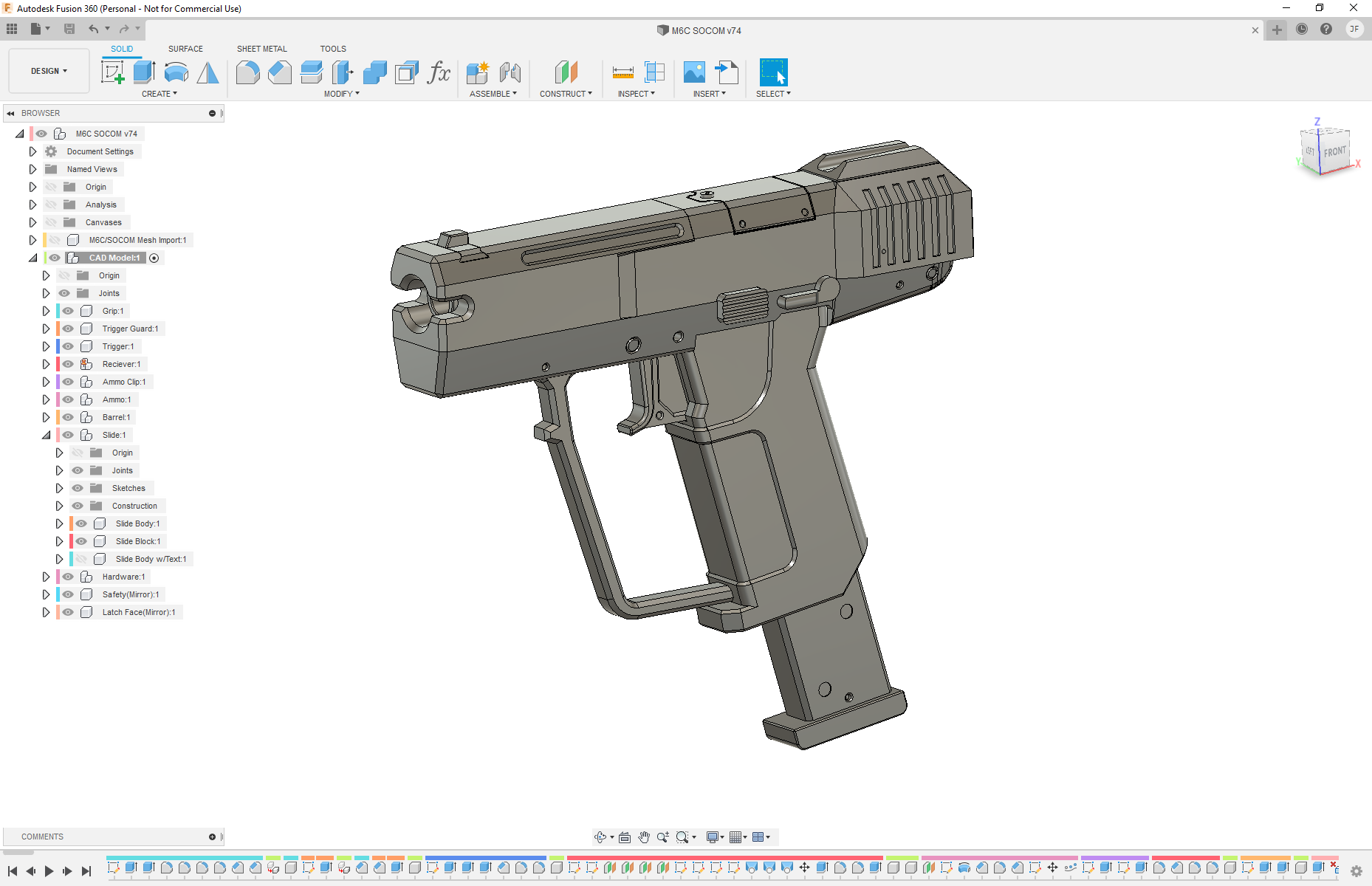 The Halo series, developed by Bungie, holds a special place in my heart. Halo was one of the first games I got on console when I was younger, and I’d followed the series and many of the books for far longer than I’d stuck with most others. And while I stopped following it as closely when 343 Studios took over, I did at least jump at the chance to get all the Halo games for PC when the MCC came to Steam. One of the games that didn’t get nearly as much love as some of the other games, Halo 3: ODST, was one of my favorites in the series. It was a great side-story and addition to the franchise in my eyes. And even to this day, I still have fun playing it. So, having gotten to play it again on PC, I’d decided to look into what replicas I could 3D print from it. Lo and behold, I found many models of the M6C/SOCOM pistol and the silenced M7/Caseless Submachine gun available for 3D printing. But, as always, after taking a look at them, they didn’t quite have the features that I wanted from the models, so… I figured I’d attempt to create my own version of these replicas, starting with the M6C/SOCOM pistol.