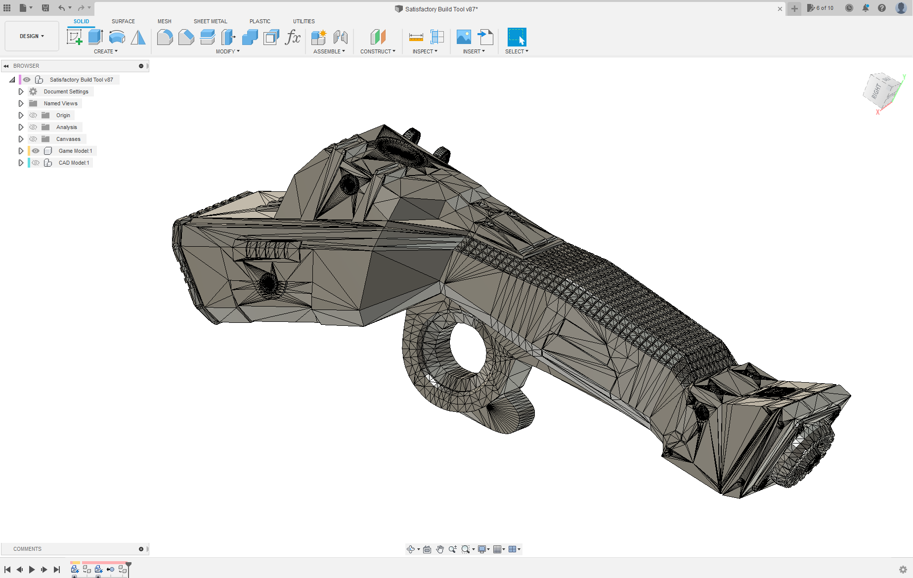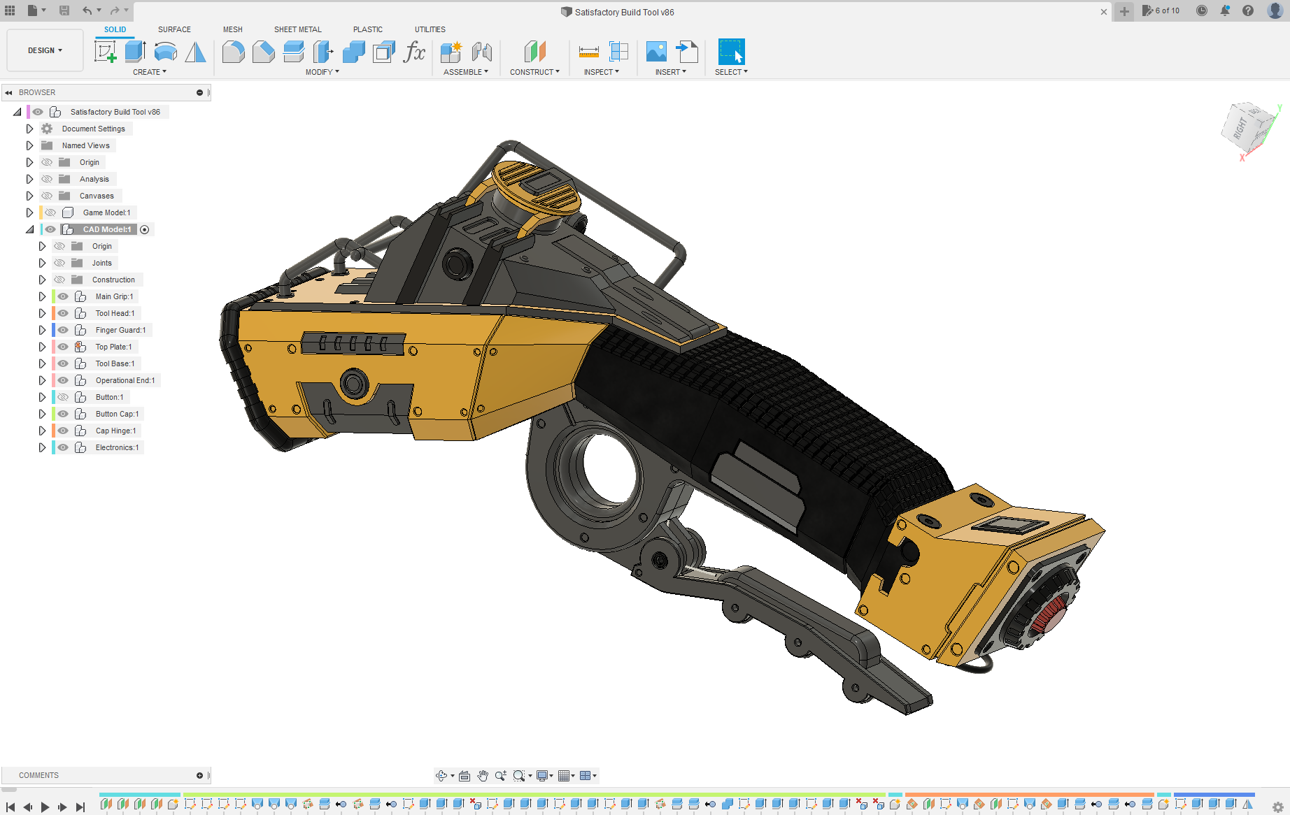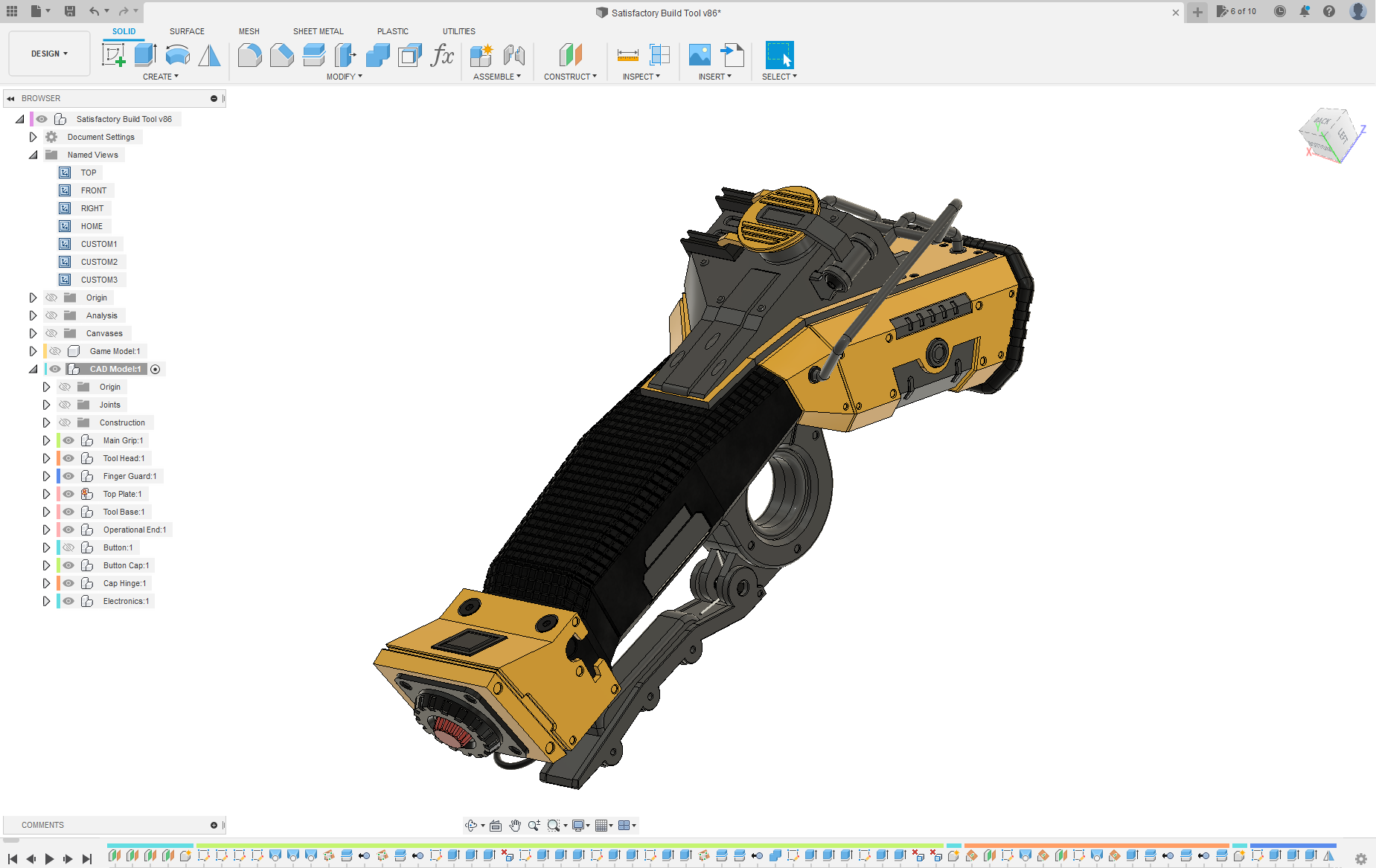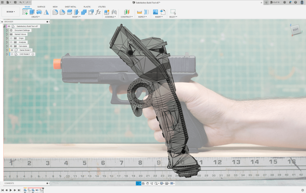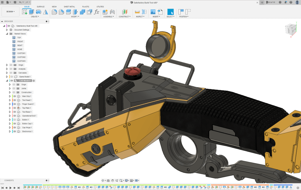 So, after playing a while, I decided I wanted to make a replica of something from the game. I didn’t want to do anything super complex, and wasn’t as super in confident that I could model any of the weapons they give the player (at least for now). I figured the Build Tool (Construction Tool?) they give you in game would be a neat replica to make, and shouldn’t be too challenging to design and 3D print.
