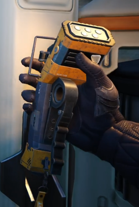 As with any project, first step is to gather reference images. I started up a new game save, as the initial cut-scene is when we really get to see the most of the build tool. After that, you only really can get shots of it during the ‘twirl’ emote, scanning for resource nodes, or when building. It was plenty to get started on modeling.