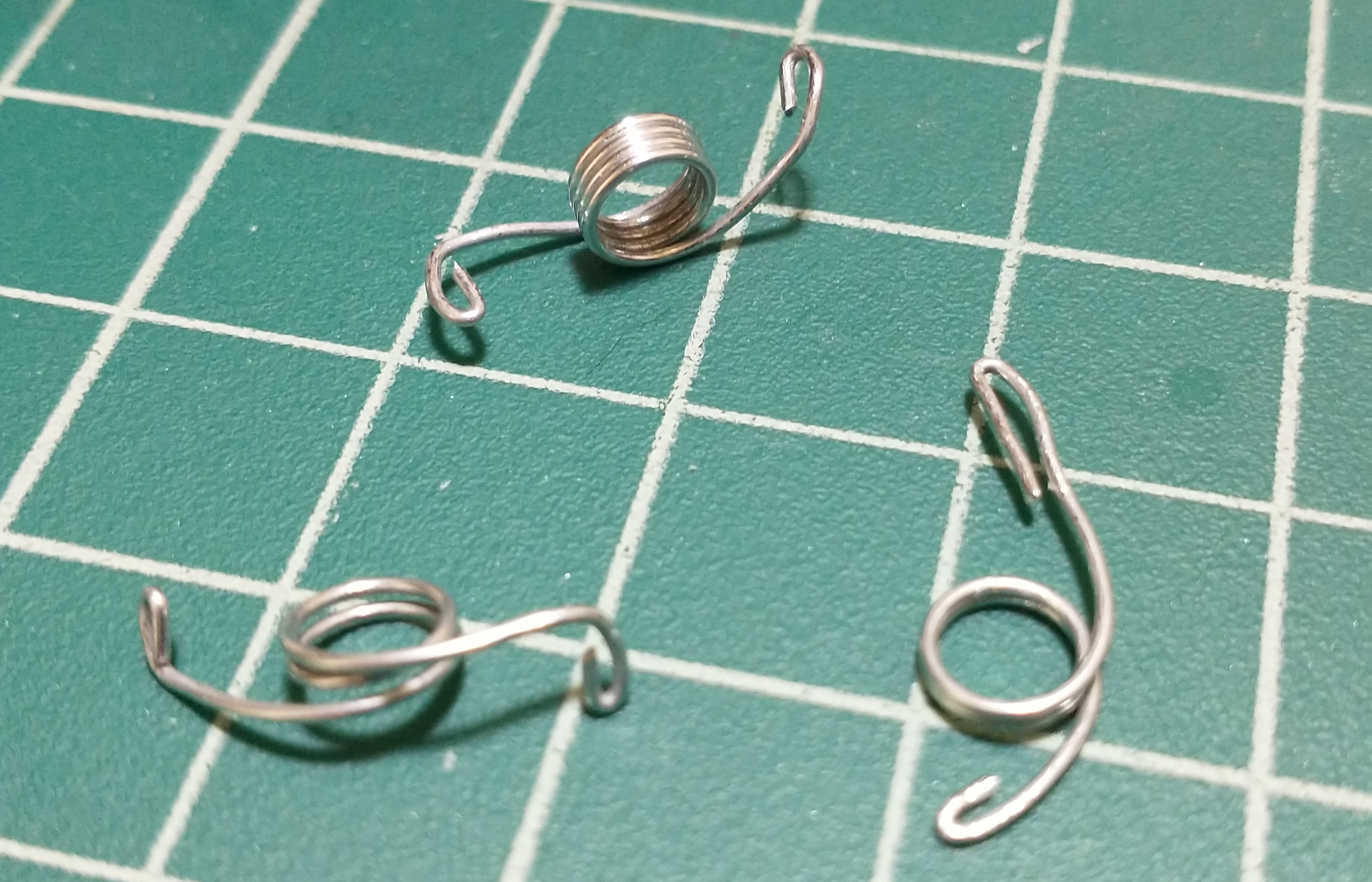 The number of times I stabbed myself with that wire, and with just how stiff and challenging to manipulate spring wire is… I swear, my hands hurt after gripping the pliers for the several hours I spent trying to get the spring just right, with the correct shape, number of coils, and then to get it to fit correctly into the replica. It’s in a rather tough to reach spot, and trying to hold it in place and then screw on the trigger to the hinge takes a few tries to get correct.