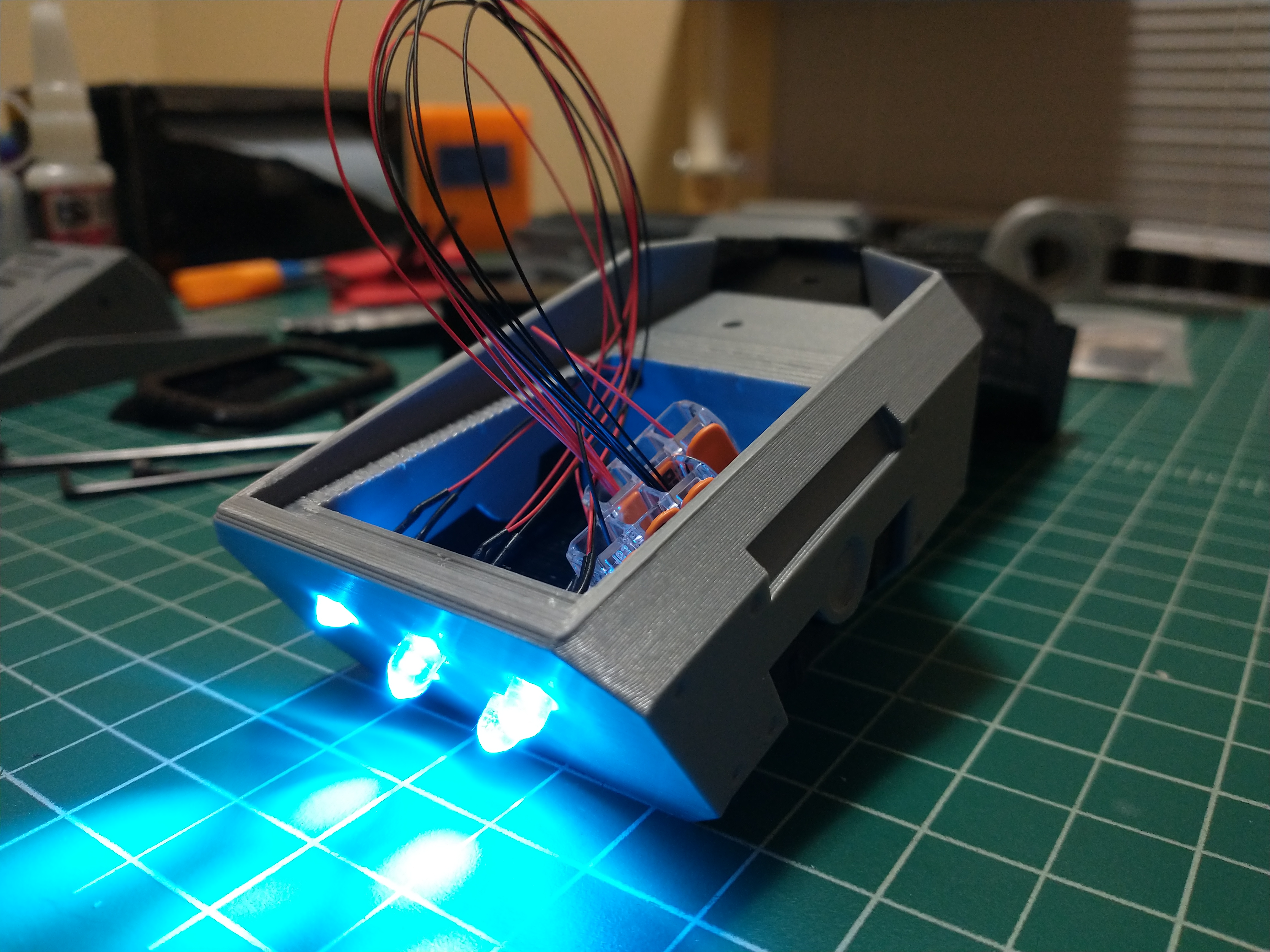 What I was sure about from the from design phase, and was excited to see to see just drop right in, was the LEDs and battery. While designing the model in CAD, I’d done some research into the LEDs and what I would need for a battery to power them and had picked out the LEDs and the battery holder that I wanted. Through a very nice hobby website called Evan Designs, I picked out a set of Ice Blue, 5mm LEDs, and a CR2032 battery holder. Both the LEDs and the battery holder worked out great in testing. As much as I wanted to wire and solder everything up, I held off, knowing it would be best to wait until after I painted the model.