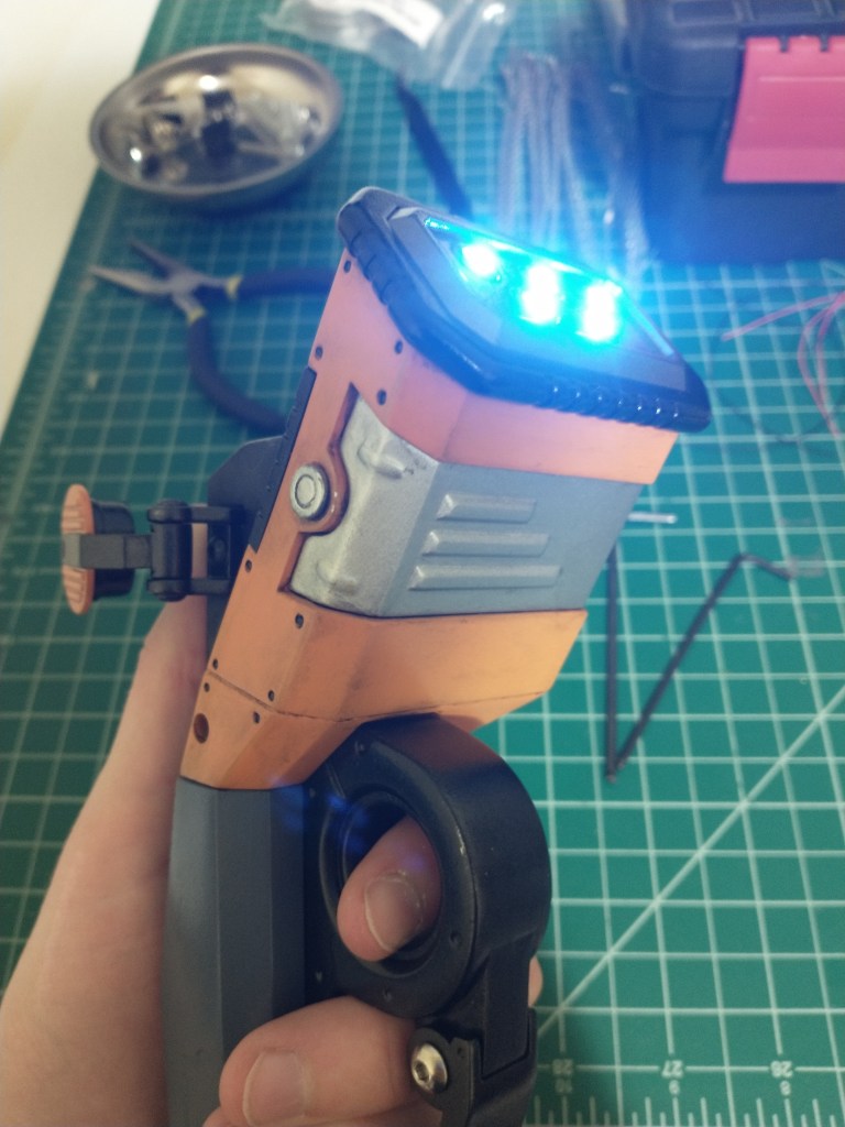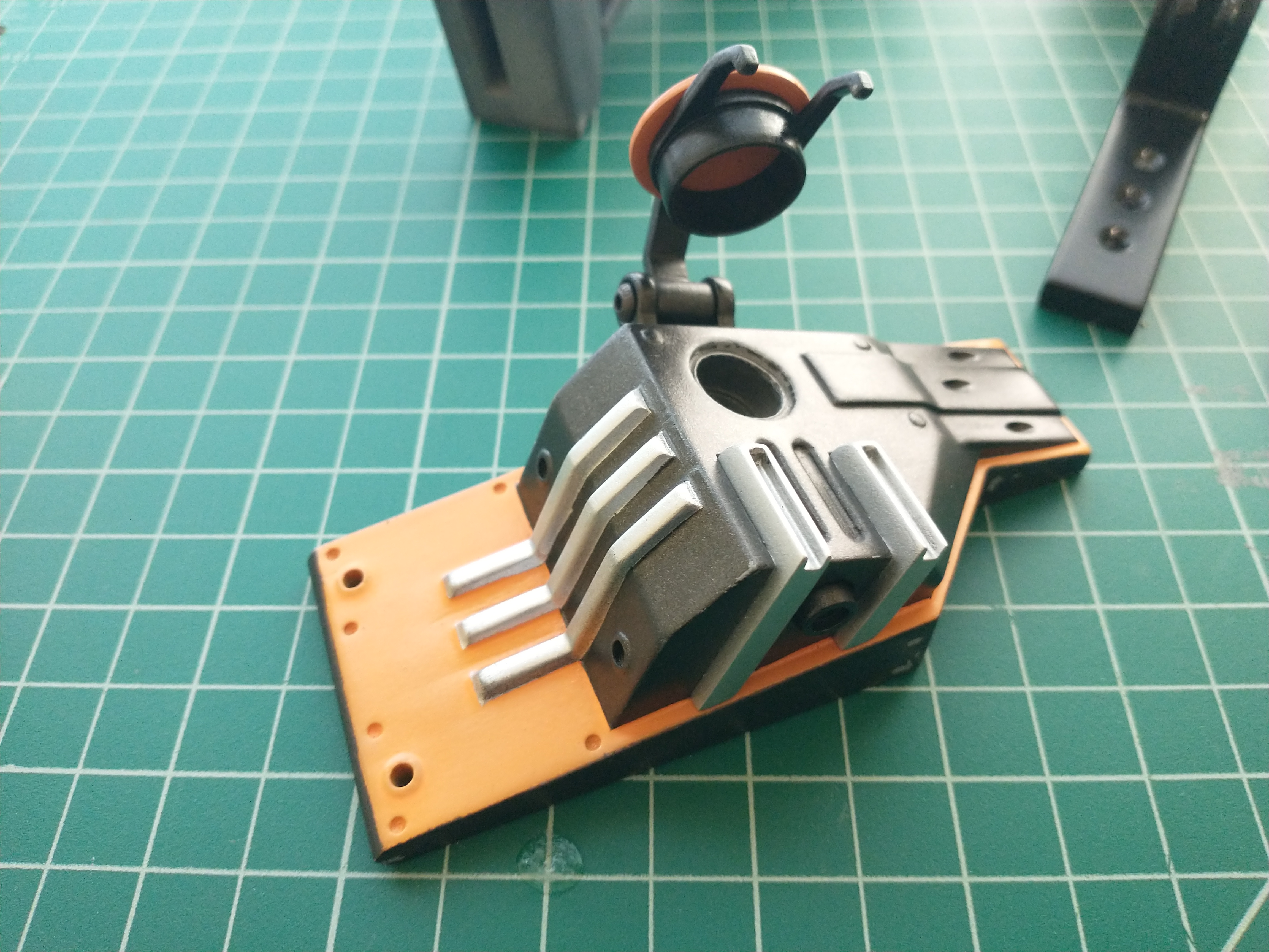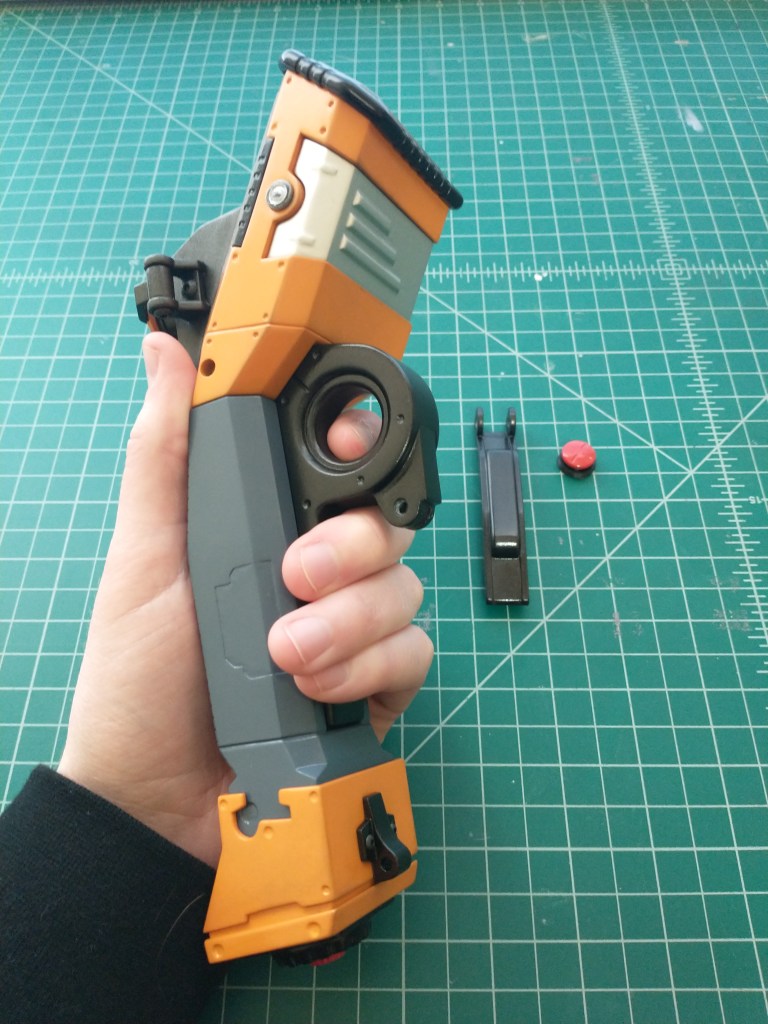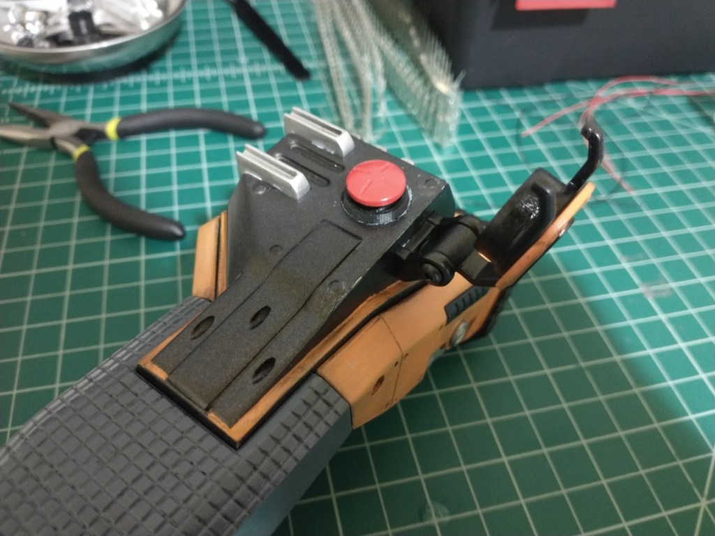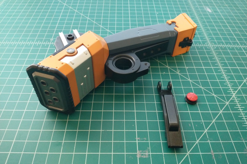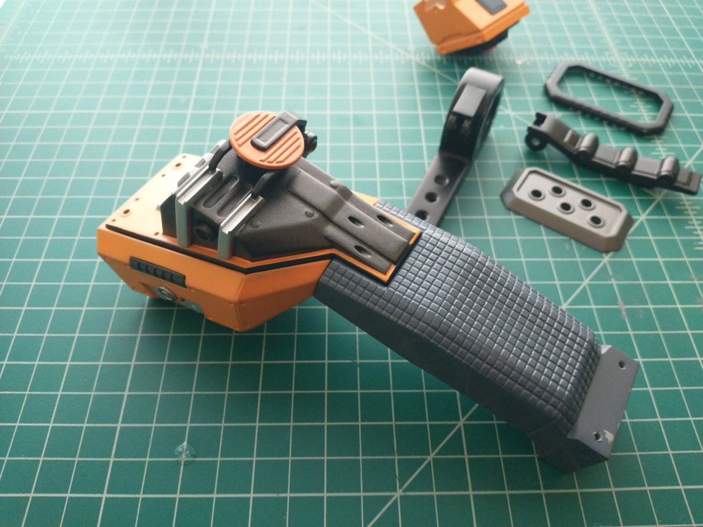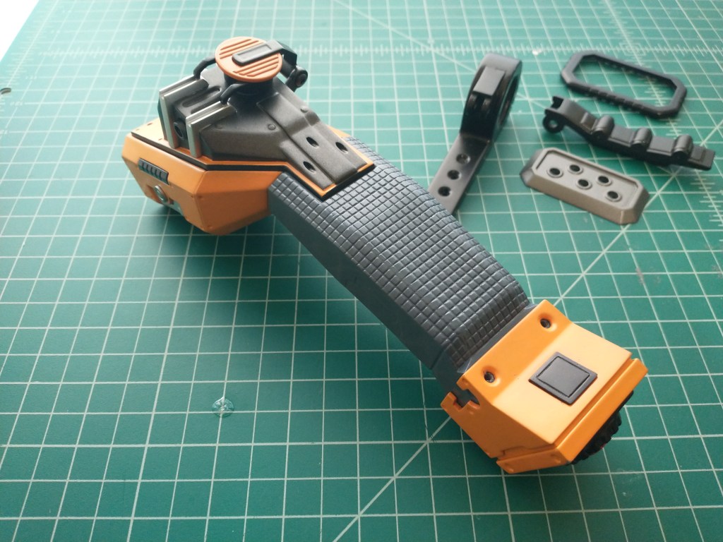 With the top plate, button cap assembled and mounted to the handle it was starting to look more like the in-game model. And with the base on it, it was looking even more like it was supposed to.