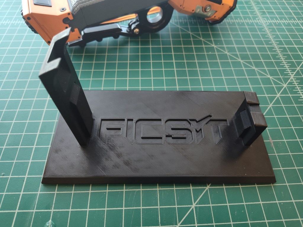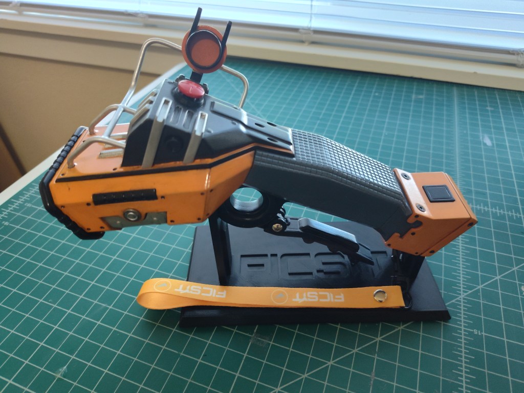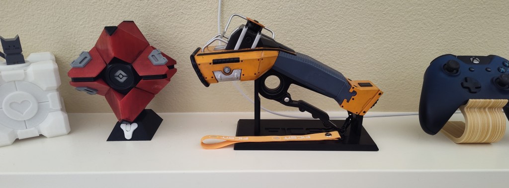 The final thing it needed now, was a stand so I could display it. Due to the odd shape of the head to the body, and the grip, and trigger, and lanyard getting in the way whenever it was set down, I had some trouble coming up with a good stand that I liked the look of. And while what I did come up with works, I think there’s probably better ways to do it, something more thematic, maybe more… Satisfactory. Either way, it looks good on its stand and on my mantelpiece next to all my other prints! Now, if I can just figure out how to get some stickers made for it…